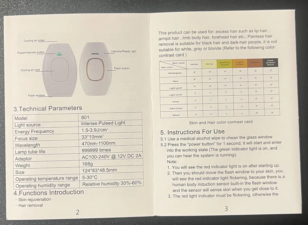 I purchased one of these believing it could work on all skin and hair colors. Afterall, that's what the website says. When I receieved the device in the mail, I immediately read the instructions and found that they say it is "not suitable for white, gray, or blonde" and also not suitable for anyone with "brown" or "dark brown/black" skin. The website is misleading. I could not be more disappointed. I didn't even use the device after reading the insturctions. It may work for some, but my hair is blonde and I need a refund.
