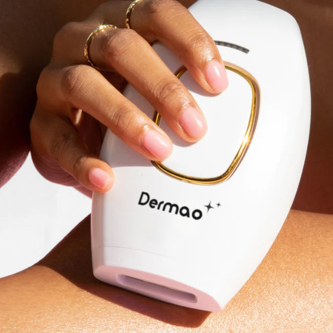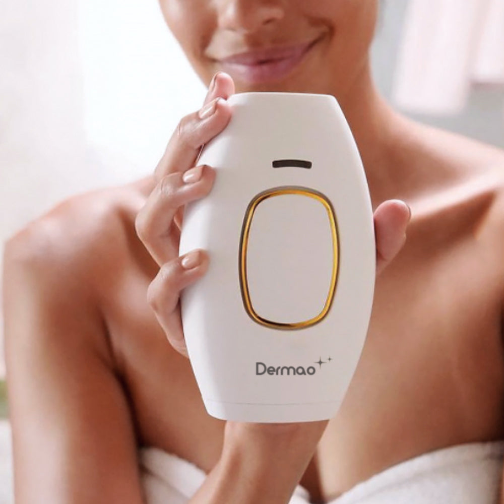 Plug your Dermao laser epilator in an electrical outlet and turn the device on. Set your intensity level and glide the epilator over the target area while pressing the button regularly.